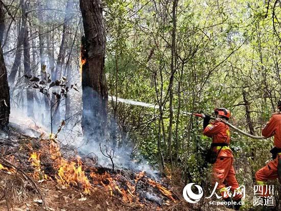 攀枝花森林消防隊(duì)員用水泵撲救林火(李叢林 攝)