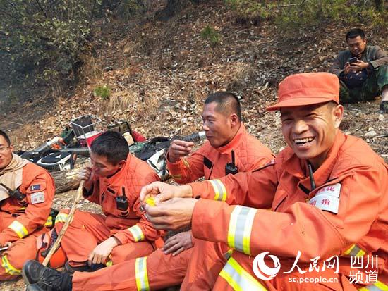 4月8日上午6時(shí),鹽邊大隊(duì)指戰(zhàn)員奉命趕到東線山梁處置火情。下午兩點(diǎn)多,簡(jiǎn)單吃了幾口干糧的指戰(zhàn)員暫時(shí)進(jìn)行休整。