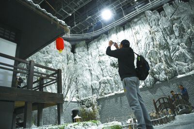除了眾多親子游客,不少年輕人也特地前來(lái)。中影基地6號(hào)棚的江南水鄉(xiāng)拍攝小景跟前,聚集了許多年輕人圍觀一對(duì)青年體驗(yàn)拍攝《大話西游》中的經(jīng)典場(chǎng)景。全副武裝扮演至尊寶的是來(lái)自北京吉利學(xué)院的學(xué)生張江。“曾經(jīng),有一份真誠(chéng)的愛(ài)情放在我面前,我沒(méi)有珍惜,等到我失去的時(shí)候才后悔莫及……”當(dāng)背出了至尊寶的經(jīng)典臺(tái)詞時(shí),張江依然覺(jué)得“很尬”,難以入戲。導(dǎo)演趕緊上來(lái)給他說(shuō)戲,“這時(shí)候劍距離你的喉嚨只有0.01公分,你要仰起頭……”這當(dāng)口,飾演紫霞仙子的女同學(xué)已經(jīng)拿不住劍,手腕松了下來(lái)。一個(gè)小時(shí)過(guò)去了,這一條還是沒(méi)能過(guò),只好休息一會(huì)兒。“人生第一次嘛,體驗(yàn)體驗(yàn)。”張江說(shuō)。