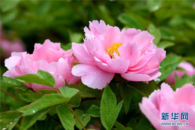 這是石家莊市正定榮國府影視基地盛開的牡丹花(4月13日攝)。時下,河北石家莊正定榮國府影視基地內的牡丹花次第開放,在春雨的滋潤下顯得格外晶瑩剔透、美麗嬌艷。 新華社發(fā)(陳其保 攝)