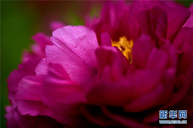 這是在石家莊市正定榮國府影視基地拍攝的牡丹花(4月13日攝)。時下,河北石家莊正定榮國府影視基地內的牡丹花次第開放,在春雨的滋潤下顯得格外晶瑩剔透、美麗嬌艷。 新華社發(fā)(陳其保 攝)