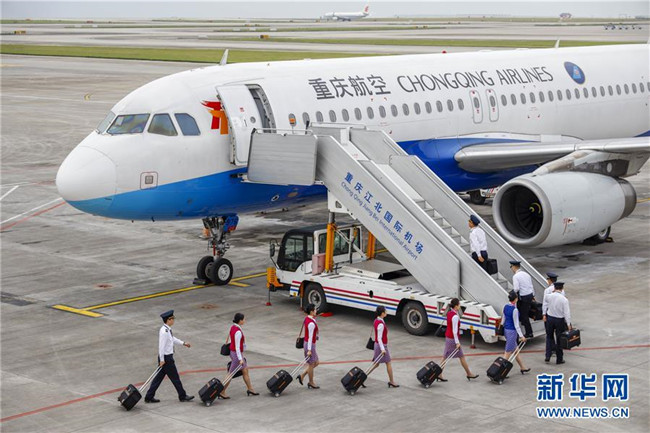 4月18日,重慶江北國際機場停機坪上,重慶航空公司的試飛機組成員在有序登機。當(dāng)日,隨著重慶航空一架客機安全平穩(wěn)降落在巫山機場,標(biāo)志著地處長江三峽核心區(qū)的巫山機場試飛工作圓滿成功。本次試飛對巫山機場陸空通信、導(dǎo)航設(shè)施、跑道道面、滑行路線、飛行區(qū)標(biāo)志標(biāo)識、機場凈空、飛行程序、機場運行標(biāo)準(zhǔn)等進行全面檢驗,各項參數(shù)和指標(biāo)正常,機場相關(guān)設(shè)施、設(shè)備均符合行業(yè)規(guī)范要求,飛行區(qū)已基本具備民航飛機通航條件,有望在今年6月正式通航。新華社記者 劉潺 攝