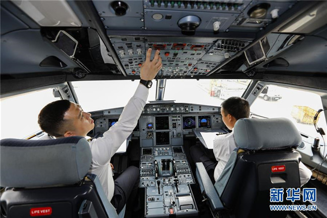 4月18日,試飛開始前,重慶航空公司的機長在進行航前檢查。當(dāng)日,隨著重慶航空一架客機安全平穩(wěn)降落在巫山機場,標(biāo)志著地處長江三峽核心區(qū)的巫山機場試飛工作圓滿成功。本次試飛對巫山機場陸空通信、導(dǎo)航設(shè)施、跑道道面、滑行路線、飛行區(qū)標(biāo)志標(biāo)識、機場凈空、飛行程序、機場運行標(biāo)準(zhǔn)等進行全面檢驗,各項參數(shù)和指標(biāo)正常,機場相關(guān)設(shè)施、設(shè)備均符合行業(yè)規(guī)范要求,飛行區(qū)已基本具備民航飛機通航條件,有望在今年6月正式通航。新華社記者 劉潺 攝
