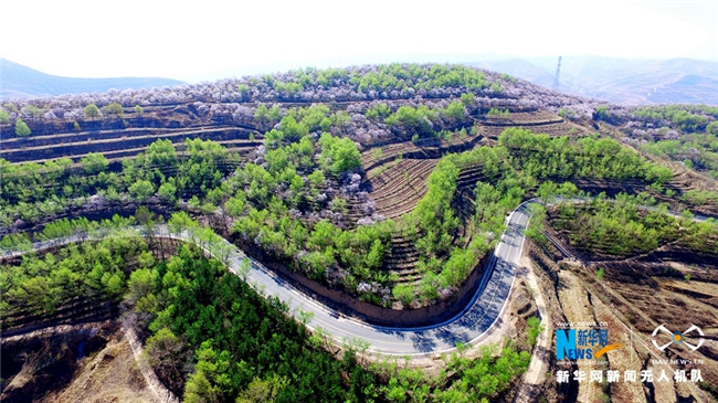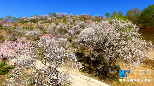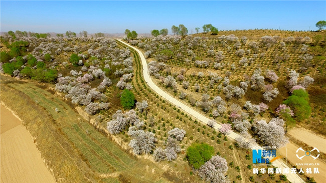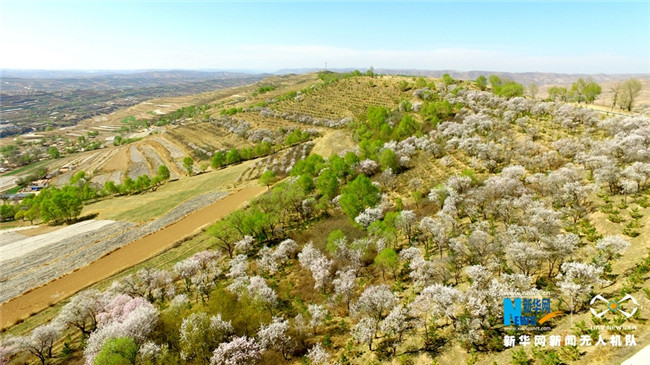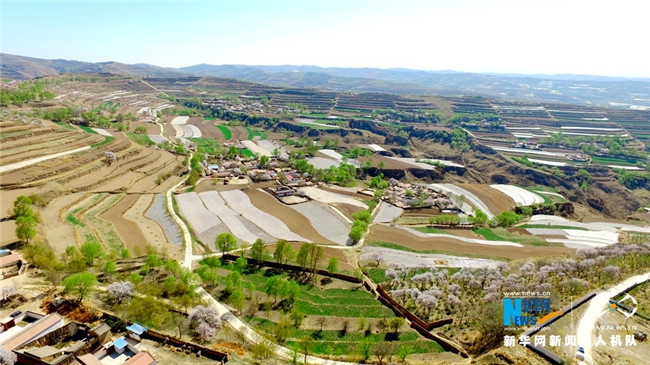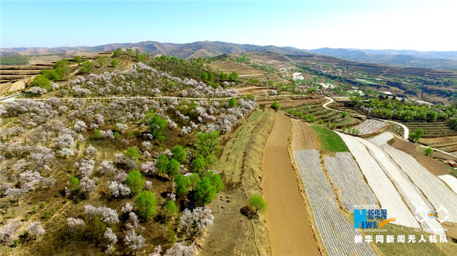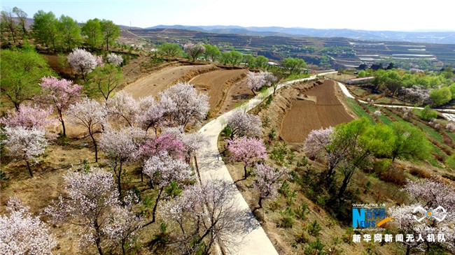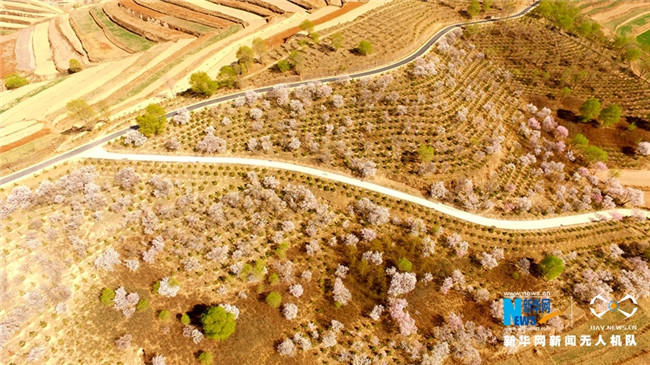 原標(biāo)題:【飛“閱”中國(guó)】甘肅定西:黃土塬上別樣景 千樹杏花笑春風(fēng)