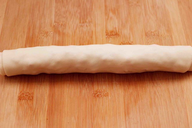 13.從面皮的一斷開始卷起來,一直卷到底。