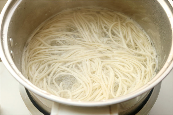 5.煮好的掛面撈出來過一下涼開水,這樣拌起來更清爽。