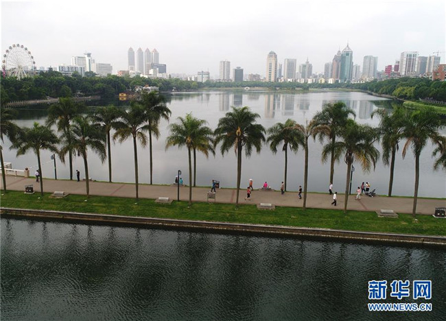 這是廣西南寧市南湖沿岸風景(5月15日攝)。
