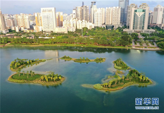 廣西南寧市從2017年底啟動南湖水質(zhì)改善項目。經(jīng)過一年多的建設,已形成水面人工島花香四溢、水下水草依依的生態(tài)凈化系統(tǒng)。加之步道、涼亭、長廊等配套工程的建設,南湖成為廣大市民休閑觀光和鍛煉的重要場所。 新華社記者 周華 攝