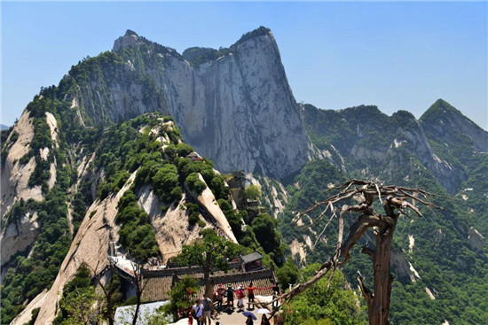 帶著這些信息,也懷揣好奇心,乘著索道去飽覽華山盛景:放眼望去開闊的視眼讓一切煩惱盡拋開,這里只有大美峰巒、只有壯闊奇險的山川,或是蔥郁的植被、或是裸露的巖石亦或近在頭頂?shù)乃{天白云……