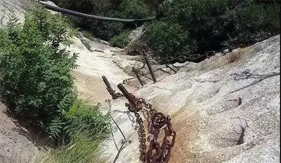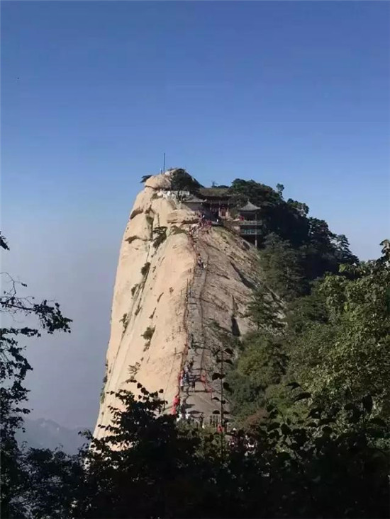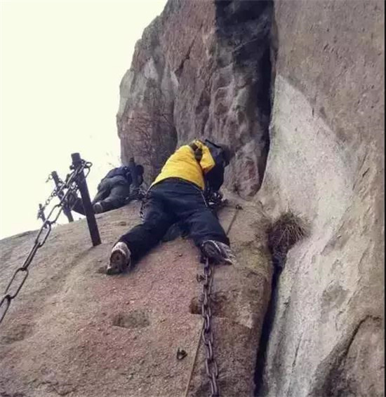 具有700多年歷史的長空棧道,在華山南峰東側(cè)山腰的萬仞絕壁上。鑿出來的幾個踏腳之處,鑲嵌石釘搭木椽搭建了一個百余米懸空的棧道,讓人望而卻步。如果你有恐高癥,僅僅看一眼都會讓你心驚膽戰(zhàn)。2013年,著名旅游網(wǎng)站“Smarter Travel”盤點全球最恐怖懸崖步道,將華山長空棧道列為全球十大最恐怖的懸崖步道之一。