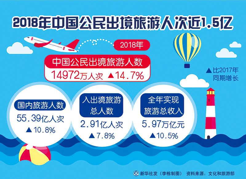 近年來,隨著我國經(jīng)濟(jì)社會發(fā)展,人民生活水平得到顯著提高,國民旅游休閑生活更加精彩,出境旅游成為新的時(shí)尚。圖為2018年中國公民出境旅游相關(guān)數(shù)據(jù)。 新華社發(fā) 李棟/制圖