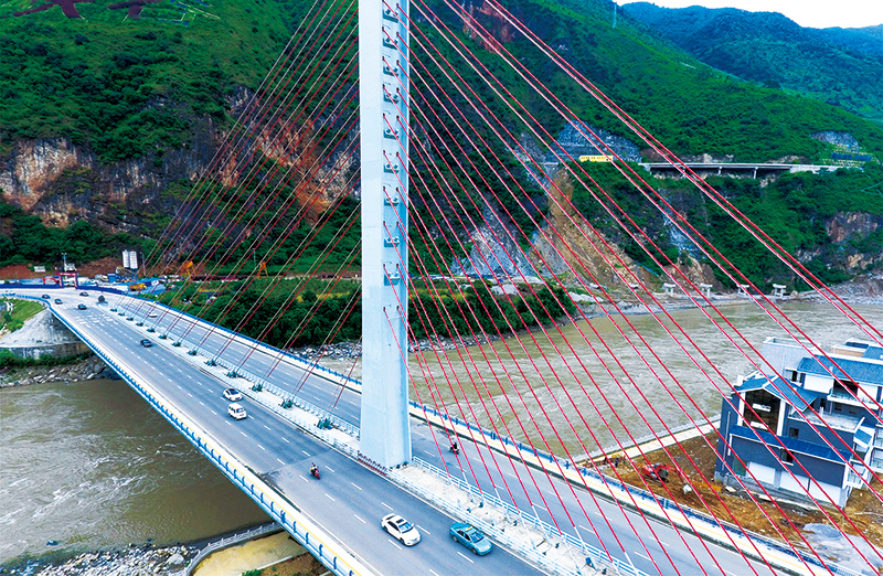 黨的十八大以來,我國把扶貧開發(fā)擺在突出位置,脫貧攻堅(jiān)取得了決定性進(jìn)展,穩(wěn)步向歷史性解決絕對貧困和全面建成小康社會邁進(jìn)。云南省怒江傈僳族自治州98%以上的國土是高山峽谷,山勢陡峭,過去群眾要依靠溜索跨越怒江,出行極為困難。如今,怒江傈僳族自治州交通狀況得到極大改善,許多溜索被橋梁所取代。上圖是2013年2月2日拍攝的瀘水市六庫鎮(zhèn)雙米地村的一名村民從集市上采購年貨歸來,依靠溜索過怒江(新華社記者 王長山/攝)。下圖是2016年9月9日拍攝的雙向六車道大型公路跨江橋梁——通達(dá)橋(新華社記者 胡超/攝)。