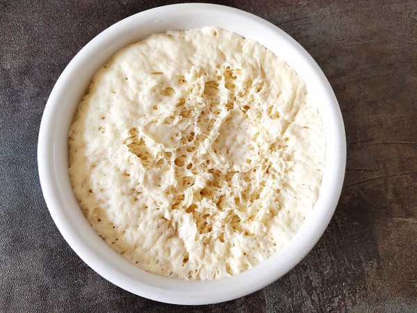 4.放溫暖處餳發(fā)到蜂窩狀,原來(lái)體積兩倍大。