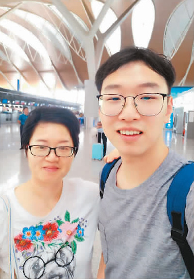 2018年9月底,丁申昊(右)去往德國之前與母親在浦東機(jī)場(chǎng)的合影。 |