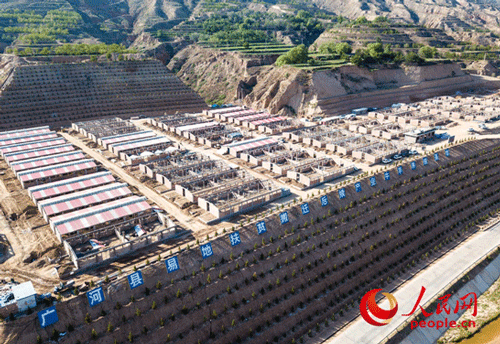(若不是樓頂?shù)臉?biāo)牌提示,很難想象這樣整齊劃一的社區(qū)是扶貧搬遷安置點。人民網(wǎng) 張桂貴/航拍)