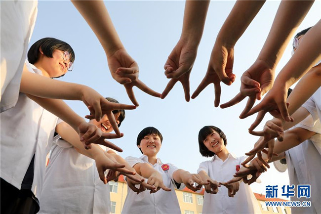 高考臨近,山東省濱州市博興縣第三中學(xué)組織高三學(xué)生參加趣味游戲,幫助學(xué)生放松心情,迎接高考。新華社發(fā)(陳彬 攝)