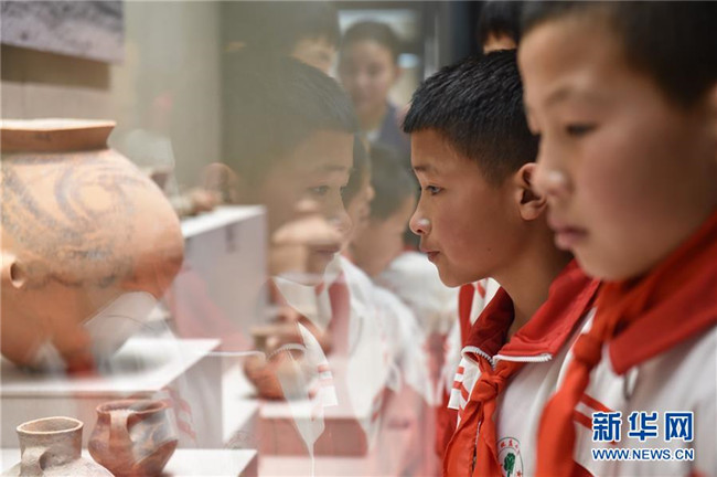 5月31日,學(xué)生們?cè)趯幭墓淘┪镳^參觀。新華社記者 唐亞蒙 攝