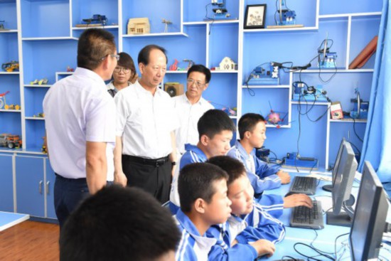 石泰峰十分關心農村學校運用“互聯(lián)網+”破解師資力量和優(yōu)質教育資源短缺問題。在西夏區(qū)鎮(zhèn)北堡鎮(zhèn)華西中學和賀蘭縣洪廣鎮(zhèn)金山小學,石泰峰走進科普活動室、錄播室和教師辦公室,了解視頻遠程教學和在線互動課堂開展情況。他說,“互聯(lián)網+教育”是促進教育公平的有效手段,要通過互聯(lián)網技術,一方面把區(qū)內優(yōu)質教育資源輸送到偏遠地區(qū)、農村學校,一方面引進發(fā)達地區(qū)先進教育理念、教學技術、數(shù)字資源為我所用,提升教育教學水平。