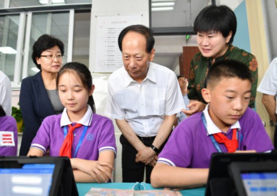 6月10日,石泰峰來到銀川市二十一小學本部,調研“互聯(lián)網+”創(chuàng)新素養(yǎng)教育開展情況。