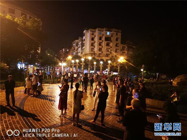 6月17日,在長(zhǎng)寧縣城竹韻廣場(chǎng),震后人們來(lái)到安全地帶。新華社發(fā)(侯莉 攝)