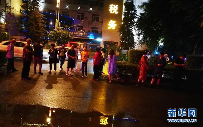 6月17日,在長(zhǎng)寧縣城,震后人們來(lái)到安全地帶。 新華社發(fā)(陳銳 攝)