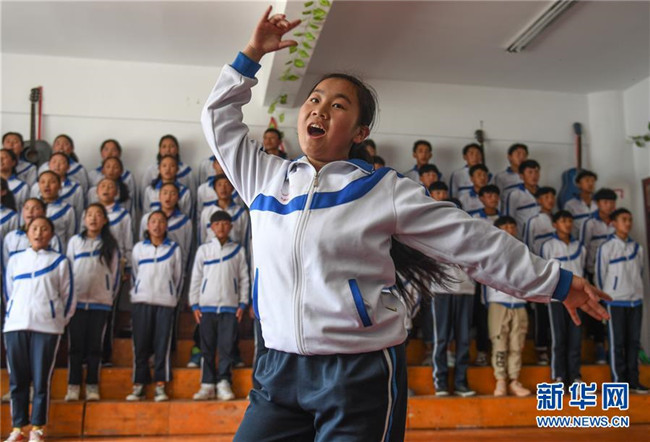 鹽井中學(xué)的學(xué)生們?cè)谏厦佬g(shù)課(6月5日攝)。年輕的藏族女教師坐在鋼琴前,手指靈動(dòng)地彈奏樂(lè)曲,兩名學(xué)生拉起弦子伴奏,三十多名學(xué)生站成四排,齊聲合唱。學(xué)?;@球場(chǎng)上數(shù)名身材高大的學(xué)生,正在體育老師的組織下進(jìn)行激烈的分組對(duì)抗,不一會(huì)兒,學(xué)生們個(gè)個(gè)汗流浹背。綜合樓三樓的化學(xué)實(shí)驗(yàn)室內(nèi),身穿白色大褂的學(xué)生,分成若干小組,正在做簡(jiǎn)單的化學(xué)實(shí)驗(yàn)。這一幕幕,同時(shí)出現(xiàn)在西藏昌都市芒康縣鹽井中學(xué)。新華社記者晉美多吉攝