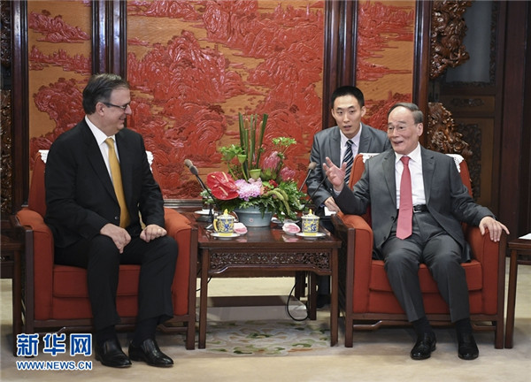 7月1日,國(guó)家副主席王岐山在北京中南海會(huì)見墨西哥外長(zhǎng)埃布拉德。新華社記者殷博古攝