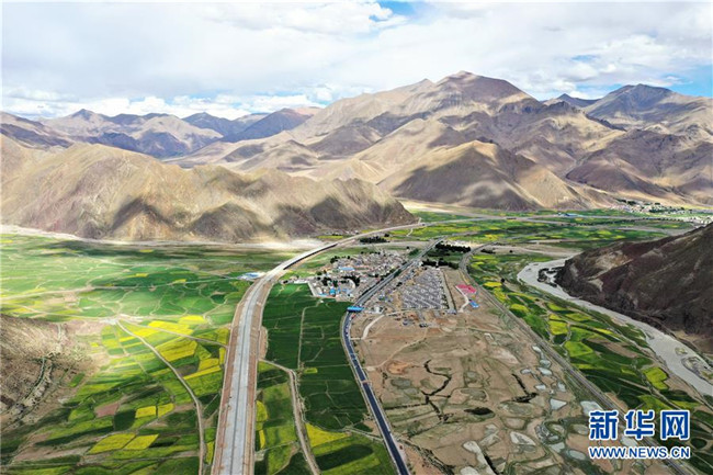 7月2日在拉薩市堆龍德慶區(qū)德慶鄉(xiāng)拍攝的油菜花田(無人機(jī)拍攝)。近日,西藏各地的油菜花盛開,呈現(xiàn)出生機(jī)勃勃的夏日美景。新華社記者晉美多吉攝