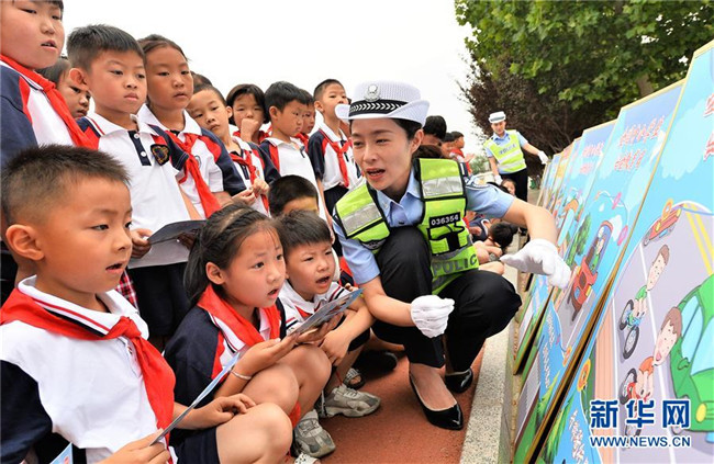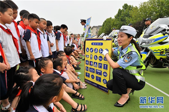 暑假將至,山東省棗莊市臺兒莊區(qū)實驗小學組織開展“暑假安全伴我行”主題安全教育活動,向?qū)W生普及交通、消防安全知識,提高學生自我防護能力。 新華社發(fā)(高啟民 攝)