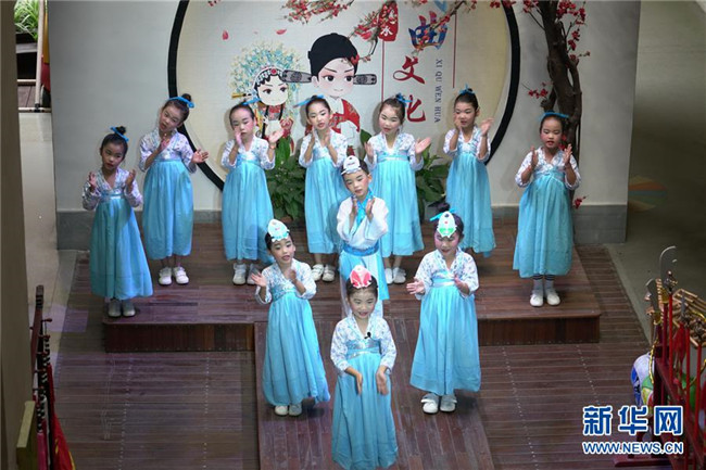 7月4日,德清縣乾元鎮(zhèn)第一幼兒園小朋友們?cè)诔诸?lèi)兒歌。新華社記者 郭緒雷 攝