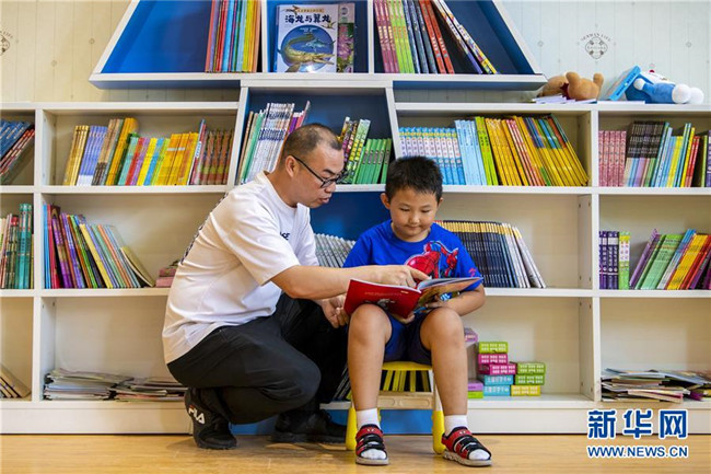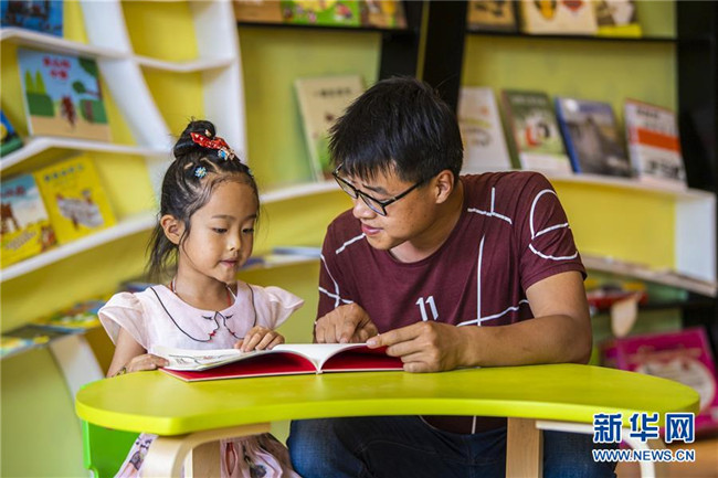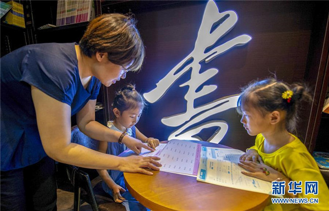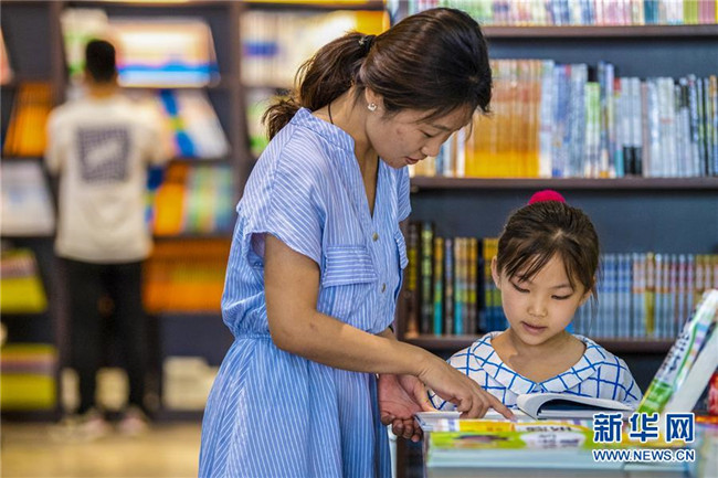7月9日,在河北省衡水市武邑縣新華書(shū)店,小朋友在家長(zhǎng)陪伴下讀書(shū)。 新華社記者 李曉果 攝