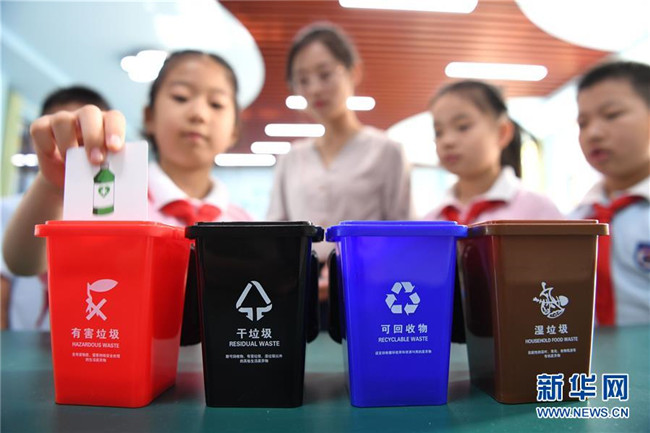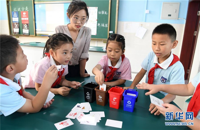 當(dāng)日,安徽合肥市建平實驗小學(xué)開展“垃圾分類”暑期公益小課堂,講解垃圾分類知識,增強(qiáng)孩子們的垃圾分類意識和資源節(jié)約意識。 新華社記者 劉軍喜 攝