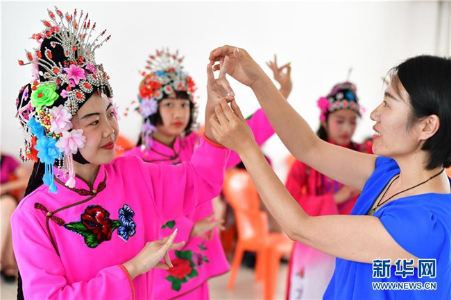 7月16日,小朋友們在灤州市自強里社區(qū)活動室學(xué)習(xí)評劇。 新華社記者 牟宇 攝