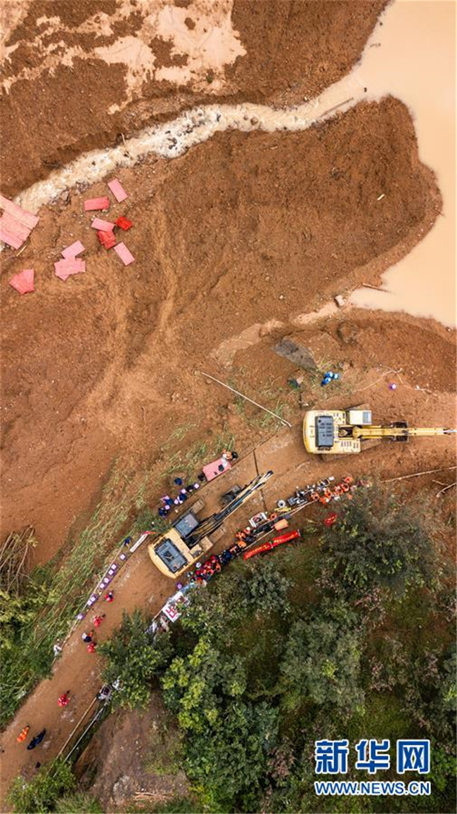 7月24日,救援人員在山體滑坡現(xiàn)場(chǎng)開展救援。 新華社記者 陶亮 攝
