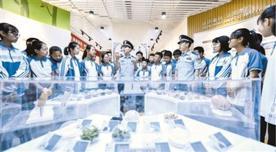 近日,在山東省棗莊市臺(tái)兒莊古城中學(xué)的禁毒教育基地,民警向?qū)W生介紹新型毒品的種類、特征和危害,提升他們識(shí)毒、防毒、拒毒的意識(shí)和能力。新華社記者 高啟民攝