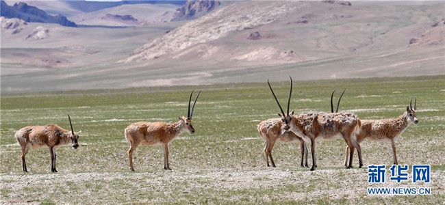 8月4日,藏羚羊在覓食。西藏那曲市尼瑪縣位于西藏西北部,位于羌塘國家級自然保護區(qū)內(nèi),是古老象雄文明的發(fā)祥地之一。這里空氣潔凈,野生動物繁多,深受游客喜愛。新華社記者覺果攝