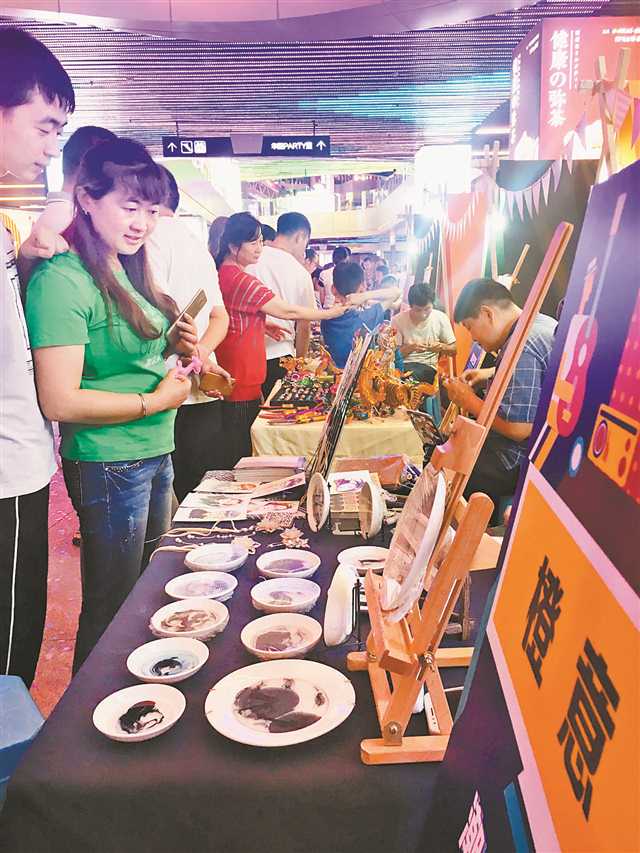 夜市上各類手工制品受到市民追捧。記者 王翔 攝