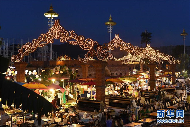 8月16日,在西雙版納傣族自治州景洪市,游客在瀾滄江畔的夜市休閑購物。新華社記者 楊宗友 攝