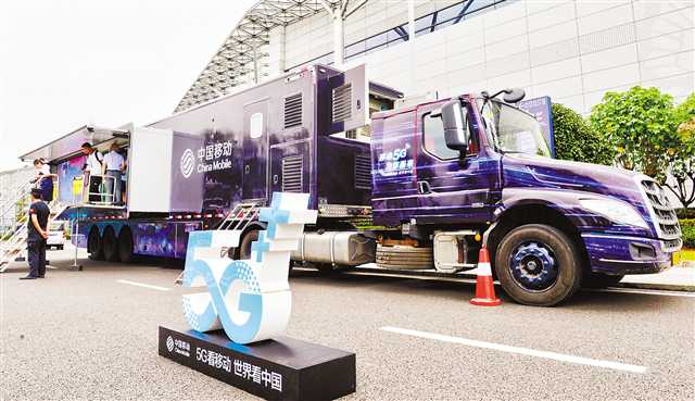 8月14日,在重慶國際博覽中心,重慶移動“5G巡洋艦”??吭诖恕_@是全市首輛大型5G應用開放體驗展示車,市民可零距離感受5G在教育、旅游、工業(yè)、娛樂領域的廣泛應用。