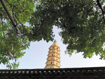北塔是一座方形九層十一級(jí)樓閣式磚塔,海寶塔建筑風(fēng)格獨(dú)特,方形的塔身,四面的券門,眾多的棱角,四角的尖頂,為中國(guó)古塔所罕見,被視為中國(guó)古代建筑的杰作。