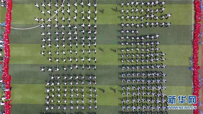 8月27日,河北省衡水市第二中學(xué)高一新生進行入學(xué)軍訓(xùn)(無人機拍攝)。新華社記者朱旭東攝