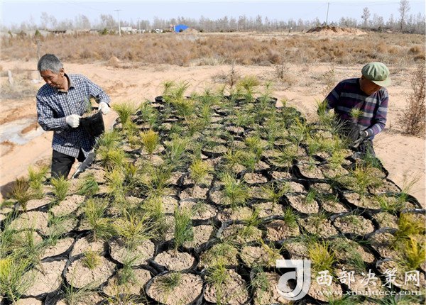靖邊縣東坑鎮(zhèn)毛團村的村民在栽種樟子松樹苗