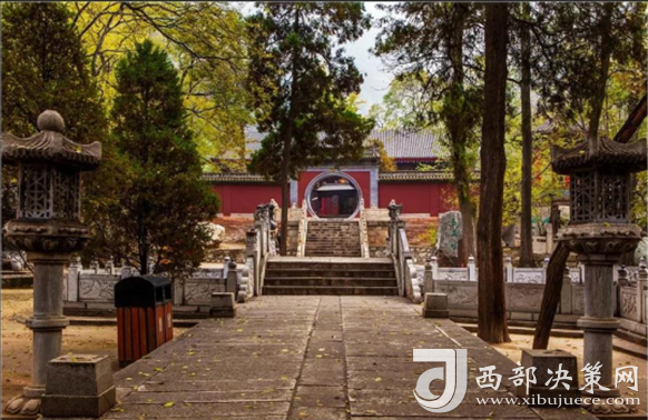 整個玉泉院亭臺樓閣,青磚藍瓦,古樸無華,傍山伊水,山氣騰霏,巒峰透欄,林立竹搖,亭臺樓廊,委婉曲折,環(huán)境優(yōu)美,使人心儀。面對這樣的環(huán)境,使人還沒登山便感受到一種天道合一的莊重,一份靜閑淡薄的飄渺,一個心生敬畏的氛圍。