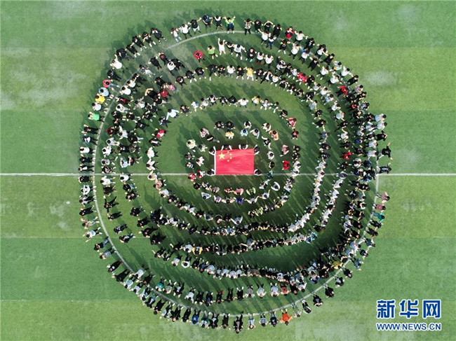 9月18日,邢臺(tái)技師學(xué)院的學(xué)生參加快閃活動(dòng)“我和國(guó)旗有個(gè)約會(huì)”。