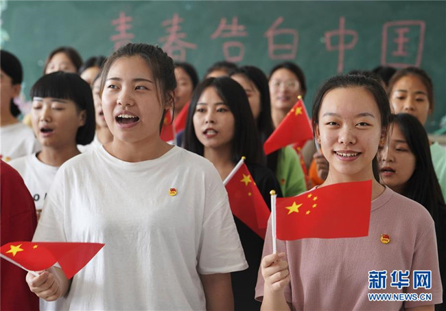 當(dāng)日,河北省邢臺(tái)技師學(xué)院開(kāi)展“青春告白中國(guó)”活動(dòng),學(xué)生們通過(guò)唱歌、快閃、專(zhuān)業(yè)課程等形式,表達(dá)對(duì)祖國(guó)的熱愛(ài)和祝福。 新華社記者 邢廣利 攝