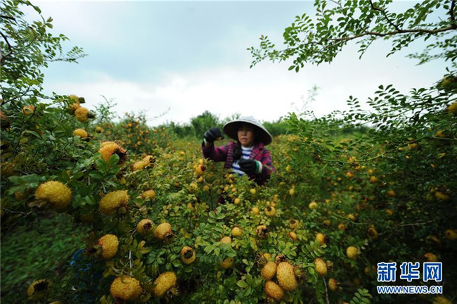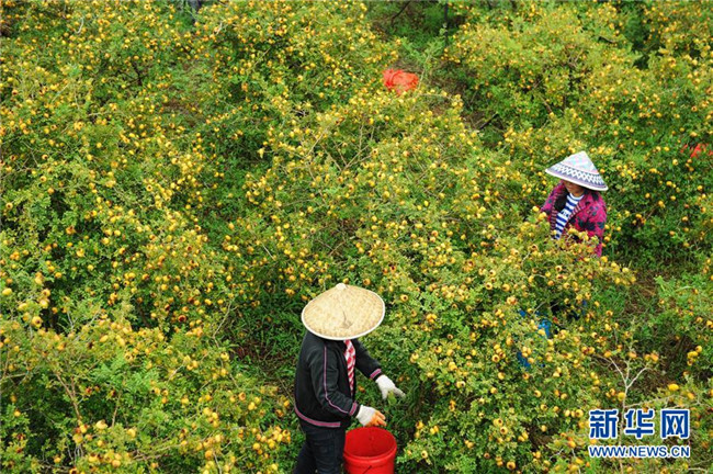 貴州省龍里縣谷腳鎮(zhèn)的農(nóng)民在采摘刺梨鮮果(2018年8月22日攝)。 近年來,貴州省圍繞產(chǎn)業(yè)選擇、培訓農(nóng)民、技術服務、資金籌措、組織方式、產(chǎn)銷對接、利益聯(lián)結、基層黨建等“八要素”,通過“減、融、服”創(chuàng)新推進農(nóng)村產(chǎn)業(yè)結構調(diào)整,既帶動了農(nóng)戶增收,也推動了特色產(chǎn)業(yè)做大做強。 新華社記者 楊文斌 攝