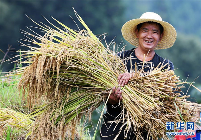 9月17日,貴州省榕江縣計劃鄉(xiāng)計劃村陽開苗寨的村民在收割水稻。 近年來,貴州省圍繞產(chǎn)業(yè)選擇、培訓農(nóng)民、技術服務、資金籌措、組織方式、產(chǎn)銷對接、利益聯(lián)結、基層黨建等“八要素”,通過“減、融、服”創(chuàng)新推進農(nóng)村產(chǎn)業(yè)結構調(diào)整,既帶動了農(nóng)戶增收,也推動了特色產(chǎn)業(yè)做大做強。 新華社記者 楊文斌 攝