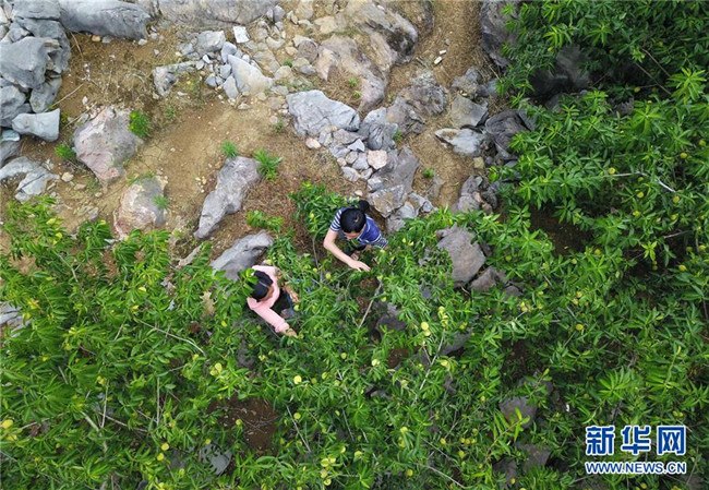 農(nóng)民在貴州省印江縣朗溪鎮(zhèn)昔蒲村的石漠化治理區(qū)采摘桃子(6月26日無人機拍攝)。 近年來,貴州省圍繞產(chǎn)業(yè)選擇、培訓農(nóng)民、技術服務、資金籌措、組織方式、產(chǎn)銷對接、利益聯(lián)結、基層黨建等“八要素”,通過“減、融、服”創(chuàng)新推進農(nóng)村產(chǎn)業(yè)結構調(diào)整,既帶動了農(nóng)戶增收,也推動了特色產(chǎn)業(yè)做大做強。 新華社記者 楊文斌 攝