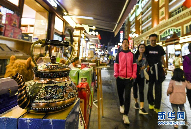 人聲鼎沸的大巴扎景區(qū),歡快的歌舞,豐富的美食,每天吸引著10余萬(wàn)海內(nèi)外游客匯聚于此。夜愈深,霓虹愈璀璨,映照著一張張笑臉。