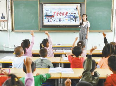 永寧縣原隆村原隆小學(xué)老師用電子屏給孩子們上課。攝于2019年9月。